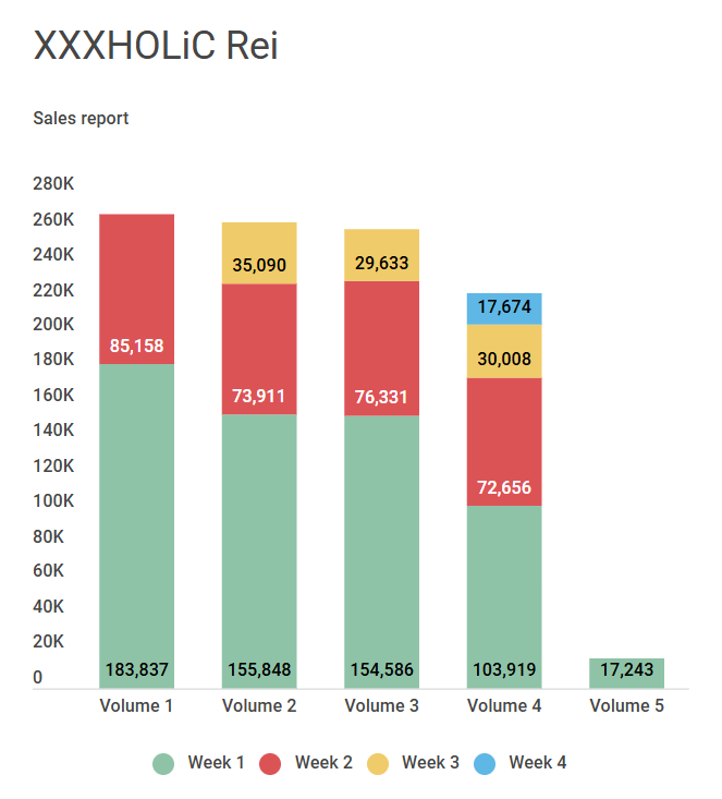 Considering these numbers alone, they represent the worst week 1 and week 2 sales for a XXXHOLiC Rei volume.
